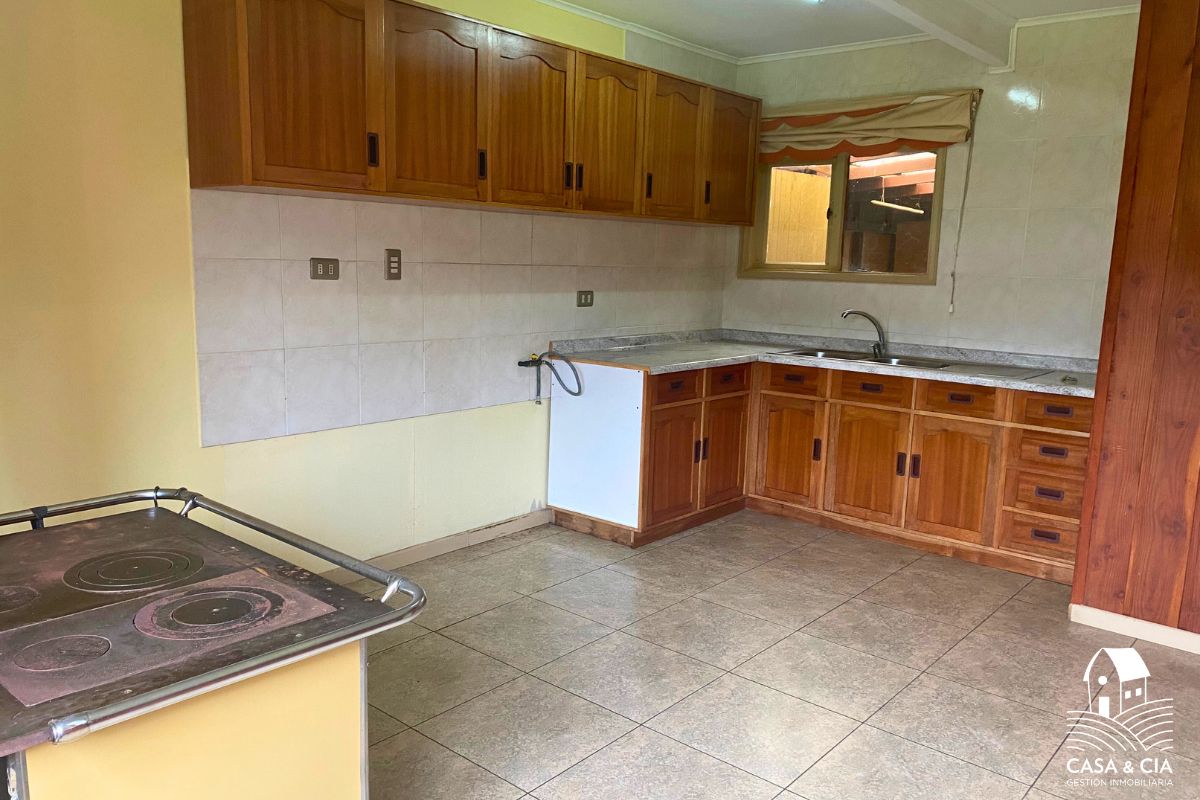 La casa tiene 2 bodegas, estacionamiento techado y la calefacción es con bosca a leña.
