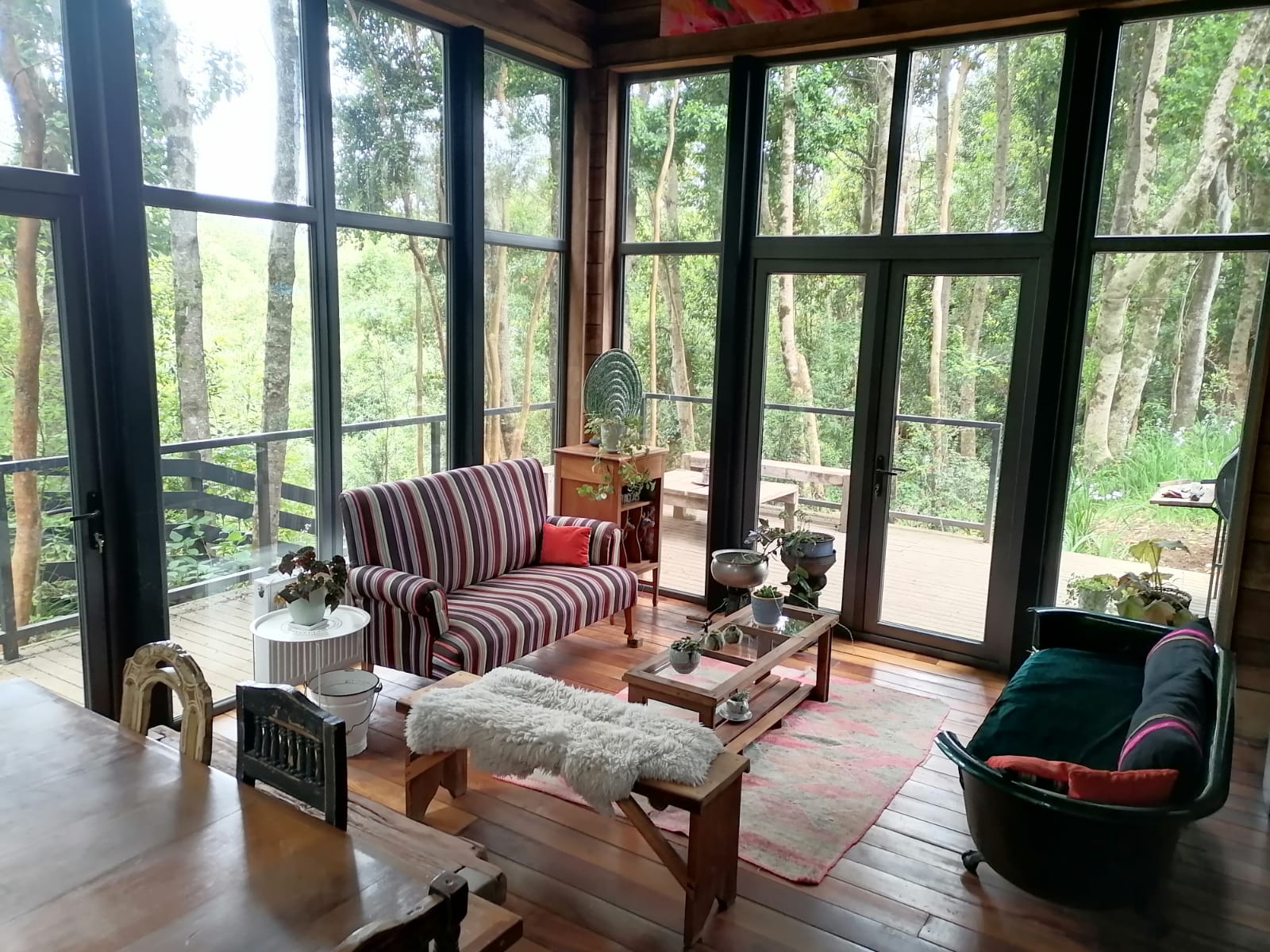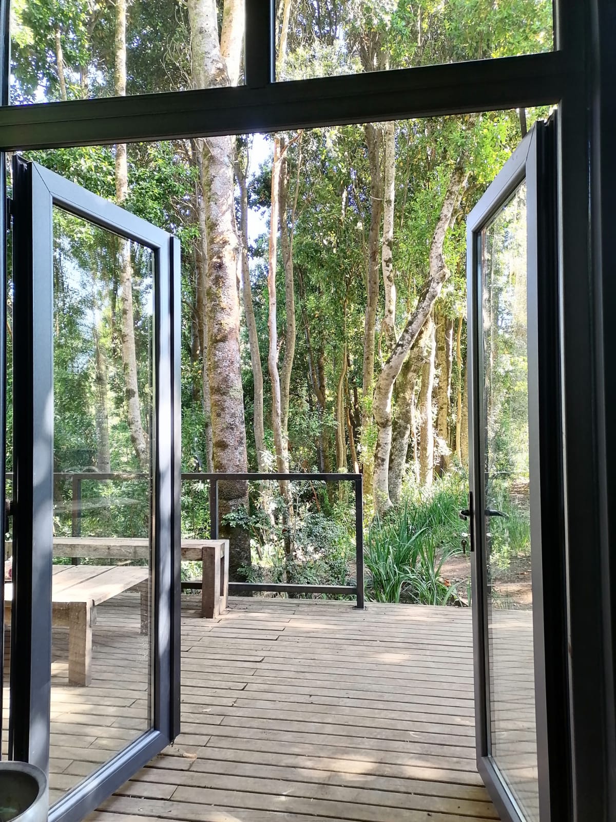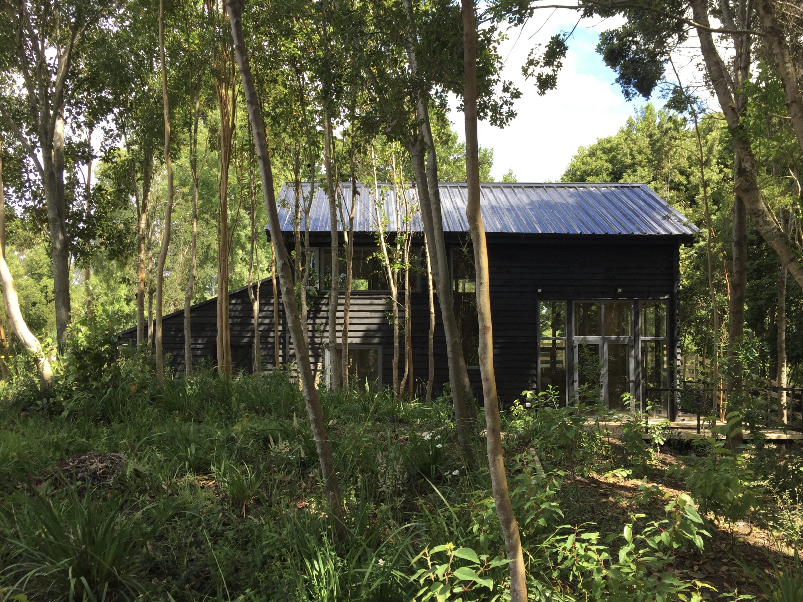 La propiedad se inserta en un parque nativo consolidado, con lingues, laureles y arrayanes, logrando una conexión directa y permanente con la naturaleza.